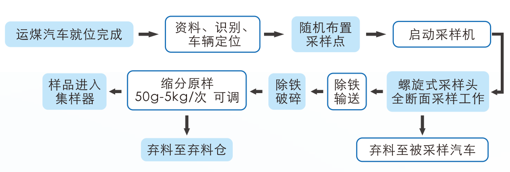 4、系統(tǒng)針對(duì)從運(yùn)煤汽車頂部采樣而設(shè)計(jì),集控制技術(shù)與機(jī)械手結(jié)構(gòu)于一體,能連續(xù)完成汽車煤采樣、制樣、縮分,并制成化驗(yàn)室所用煤樣。